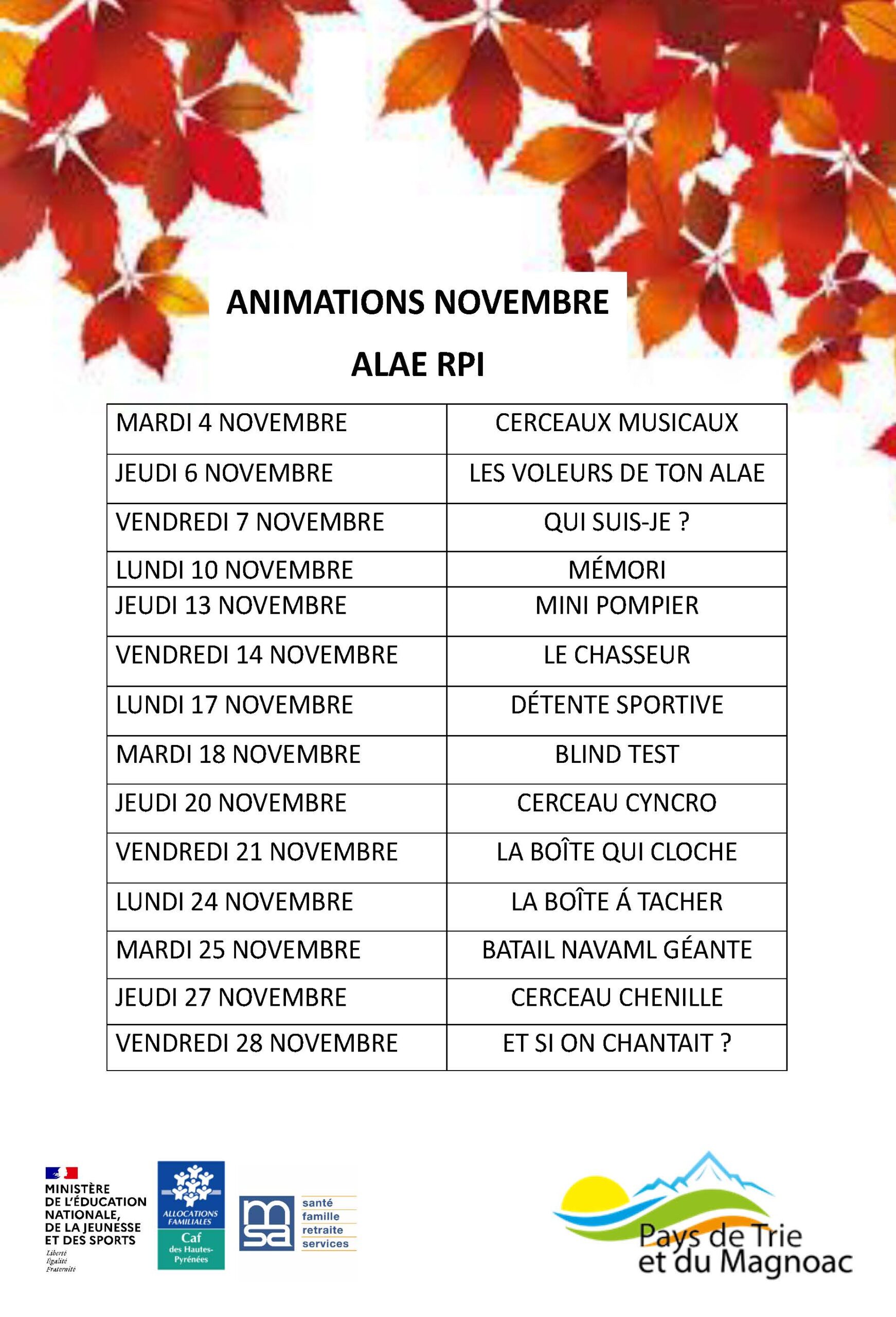 - Des projets d’animations, sur différents thèmes seront déclinés tout au long de l’année, en lien avec tous les acteurs éducatifs