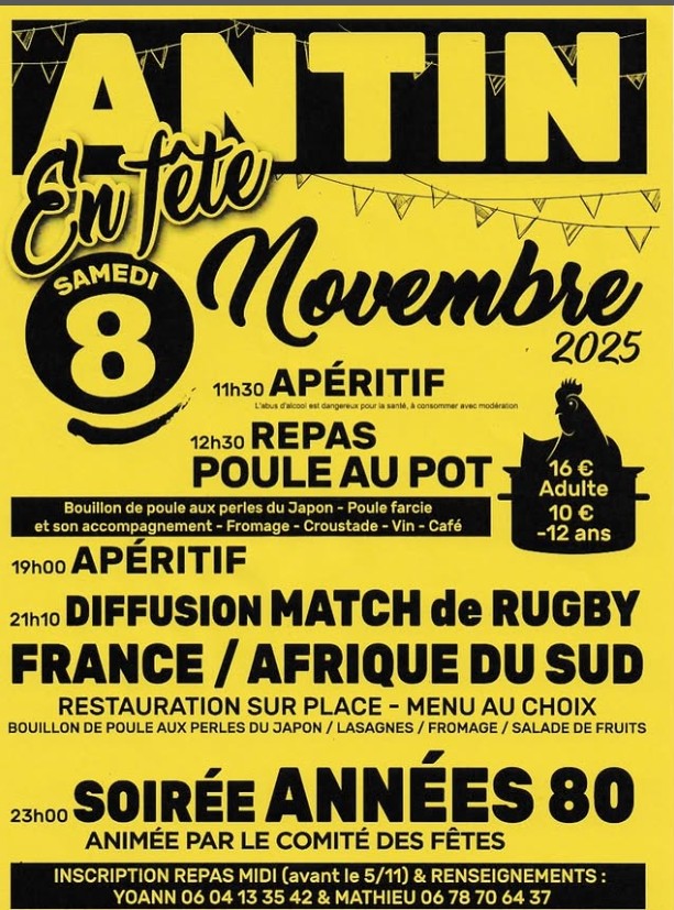 SortiesCalendrier des Messes 01/11/2025 à TRIE-SUR-BAISEENSEMBLE PAROISSIAL Religieuse Braderie Boutique Secours Catholique 03/11/2025 à CASTELNAU-MAGNOACOuvert les 1er et 3ème Jeudis du mois de 14h à 16h et tous les samedis de 9h à 12h Jouets, livres pour les enfants et tenue de fête pour les adultes Présents au marché du 6 décembre Ouvert à tous Recherche de bénévoles 06 73 66 15 67 SECOURS CATHOLIQUE Vide greniers Braderie Associative ou civique Tél cellulaire 06 73 66 15 67 Observation des oiseaux au lac de Puydarrieux![]() 07/11/2025 à PUYDARRIEUXVous pourrez rejoindre un membre de la MNE 65, à 16h30 au coucher du soleil, à la cabane du virage pour observer les oiseaux migrateurs présents sur le marnage Longues vues et jumelles seront mises à votre disposition Gratuit, sans inscription À la cabane du virage (43 278199, 0 417659) MAISON DE LA NATURE ET DE L'ENVIRONNEMENT Animation locale - Démonstration - Initiation Animaux Découverte - Sensibilisation - Environnement - Nature et détente - Patrimoine Tél filaire 05 62 33 61 66 Site internet: http://www.maisondelanature65.com Soirée ciné-débat 07/11/2025 à CASTELNAU-MAGNOACSynopsis du film : Qu’est-ce qu’un tiers lieu ? À quoi ça sert ? À qui s’adresse-t-il ? Derrière ces questions en apparence simples se cache une réalité riche et plurielle Espaces d’entre-soi ou lieux de vivre-ensemble ? Services pratiques ou missions sociales et environnementales ? À travers un voyage dans quatre villes de France — Paris, Lyon, Marseille et Nantes — ce documentaire explore des tiers-lieux très différents, pour tenter de mettre en lumière ce qui les unit et d’esquisser une définition plus claire de ces espaces hybrides La soirée : Après la projection, le Laboratoire Organique de Lustar (LOL) interviendra pour animer un temps d’échange et de débat autour des enjeux des tiers-lieux, avant de prolonger la discussion dans une ambiance conviviale autour d’un repas partagé Un beau moment de découverte, de réflexion collective et de partage en perspective ! On vous attend avec impatience ! MEDIATHEQUE Film - Diaporama Culturelle Tél filaire 09 71 51 80 62 Fête locale 08/11/2025 à ANTIN11h30 Apéritif 12h30 Repas (bouillon de poule aux perles du Japon, poule farcie et son accompagnement, fromage, croustade, vin, café) 16€/adulte et 10€/enfant -12ans 19h Apéritif 21h Diffusion match de rugby France/Afrique du sud Restauration sur place - Menu au choix 23h Soirée année 80 animée par le comité COMITE DES FETES Animation locale - Bal - Repas Tél cellulaire 06 04 13 35 42 Tél cellulaire 06 78 70 64 37 Lire la suite → |