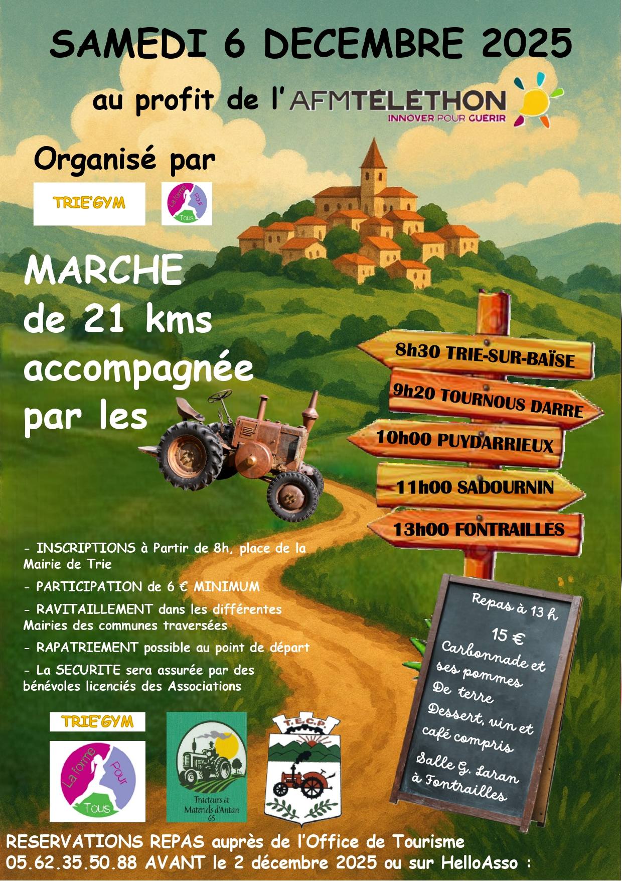 SortiesBraderie Boutique Secours Catholique 03/11/2025 à CASTELNAU-MAGNOACOuvert les 1er et 3ème Jeudis du mois de 14h à 16h et tous les samedis de 9h à 12h Jouets, livres pour les enfants et tenue de fête pour les adultes Présents au marché du 6 décembre Ouvert à tous Recherche de bénévoles 06 73 66 15 67 SECOURS CATHOLIQUE Vide greniers Braderie Associative ou civique Tél cellulaire 06 73 66 15 67 Calendrier des Messes 01/12/2025 à TRIE-SUR-BAISEENSEMBLE PAROISSIAL Religieuse Observation des oiseaux au lac de Puydarrieux![]() 05/12/2025 à PUYDARRIEUXVous pourrez rejoindre un membre de la MNE 65, à 15h30 au coucher du soleil, à la cabane du virage pour observer les oiseaux migrateurs présents sur le marnage Longues vues et jumelles seront mises à votre disposition Gratuit, sans inscription À la cabane du virage (43 278199, 0 417659) MAISON DE LA NATURE ET DE L'ENVIRONNEMENT Animation locale - Démonstration - Initiation Animaux Découverte - Sensibilisation - Environnement - Nature et détente Tél filaire 05 62 33 61 66 Site internet: http://www.maisondelanature65.com Marché de Noël 06/12/2025 à CASTELNAU-MAGNOACMAIRIE Marché Noël Manifestation commerciale Tél filaire 05 62 39 80 62 Site internet: https://www.castelnau-magnoac.fr Marchez pour le Téléthon 06/12/2025 à TRIE-SUR-BAISEMarche de 21km au profit du Téléthon 8h30 Trie-sur-Baïse 9h20 Tournous-Darré 10h Puydarrieux 11h Sadournin 13h Fontrailles et repas 15€ (carbonnade et ses pommes, dessert, vin et café compris) Inscription aux repas à l'Office de Tourisme TRIE'GYM Balade / Randonnée Associative ou civique - Sports et loisirs Tél cellulaire 06 81 23 79 50 Lire la suite → |
