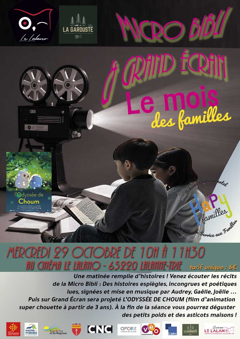 SortiesCalendrier des Messes 01/10/2025 à TRIE-SUR-BAISEENSEMBLE PAROISSIAL Religieuse Mois des familles 10/10/2025 à CASTELNAU-MAGNOACActivités, contes, ateliers, etc CCPTM Animation locale - Atelier Pour enfant Culturelle - Découverte - Sensibilisation Micro Bibli & Ecran géant![]() 29/10/2025 à LALANNE-TRIEProjection du film d’animation L’ODYSSÉE DE CHOUM, précédée de la lecture de courtes histoires par l’association La Garouste et sa Micro Bibli CINEMA LE LALANO - MAISON DE LA COMMUNICATION Cinéma Culturelle Tél cellulaire 06 87 97 35 51 Tél filaire 09 63 45 26 25 Site internet: http://lelalano.fr/ Halloween 31/10/2025 à TRIE-SUR-BAISE19h30 à 22h ouvert à tous les enfants de 3/11 ans sous la responsabilité des parents Venez déguisés à la Maison Enfance Jeunesse fermeture des entrées à 21h SERVICE ENFANCE JEUNESSE CCPTM Pour enfant Associative ou civique Tél cellulaire 05 62 50 02 78 Loto du Foyer rural 31/10/2025 à PUNTOUSRdv salle des fêtes Tel 06 25 28 16 17 COMITE Animation locale Loto Lire la suite → |