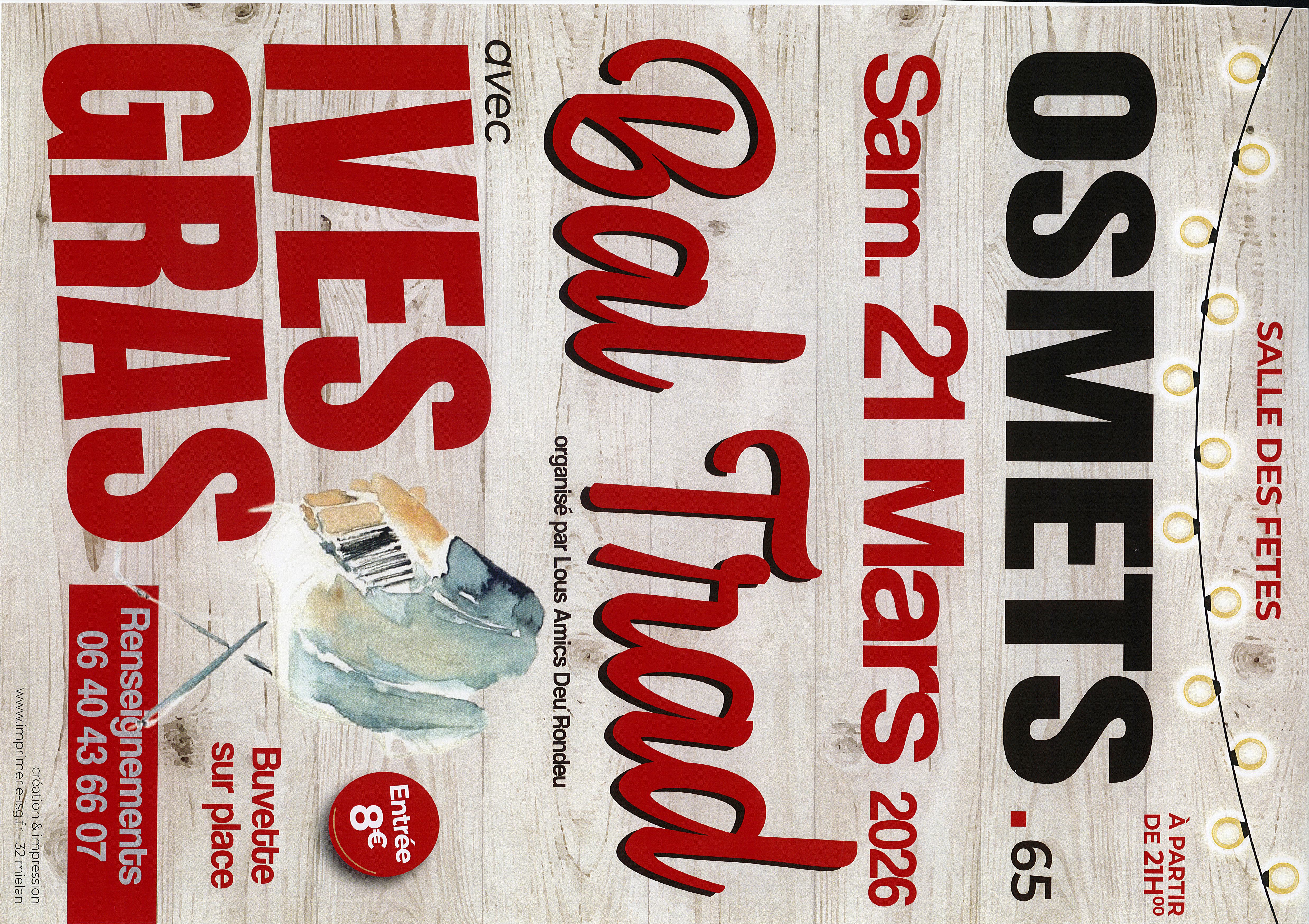 SortiesBraderie Boutique Secours Catholique![]() ![]() 01/03/2026 à CASTELNAU-MAGNOACOuvert les 1er et 3ème Jeudis du mois de 14h à 16h et les samedis de 9h à 12h Ouvert à tous Pour l'achat effectué, la même valeur offerte au choix dans la boutique SECOURS CATHOLIQUE Vide greniers Braderie Associative ou civique Tél cellulaire 06 73 66 15 67 Pyrénées d'un 3000 à l'autre 18/03/2026 à MONLEON-MAGNOACFlorian Jacqueminet, randonneur, grimpeur ou photographe a gravi plus de 129 sommets pyrénéens de plus de 3000 mètres en 44 courses faciles à assez difficiles Il viendra partager en images avec nous sa passion pour les Pyrénées Participation libre Chapelle des Pénitents Les mercredis de Monléon-Magnoac Conférence - Film - Diaporama Culturelle Tél filaire 05 62 99 40 08 Semaine nationale de la petite enfance 18/03/2026 à PUYDARRIEUXAtelier "cuisine de boue" à la Maison de la Nature et de l'Environnement 65 à Puydarrieux Prévoir de vieux vêtements - Places limitées - de 1 à 6 ans Informations au 05 62 33 61 66 CCPTM Atelier Pour enfant Bal trad 21/03/2026 à OSMETSBal avec Ives Gras Entrée 8€ Buvette LOUS AMICS DEU RONDEU Animation locale - Bal Associative ou civique Tél cellulaire 06 40 43 66 07 Rando Quad et Moto21/03/2026 à GUIZERIX Une rando conviviale, ouverte aux passionnés de quad et de moto Inscriptions & renseignements rando : 07 85 55 32 71 Vous pouvez régler via le lien Hello Asso , le paiement est bien sécurisé pas de panique! À partir de 20h – Apéritif & repas animé par LES 3 GIPSY Menu : 17€ / Enfant : 10€ Salade composée, Moules / Frites, Fromage, Tourteau / crème anglaise, Pain & café compris, Bouteille de vin : 8€ Inscriptions repas : 07 71 05 88 17 23h – Bal animé par le podium T N T Venez nombreux, entre amis ou en famille COMITE DES FETES Animation locale Sports mécaniques Associative ou civique Site internet: https://www.helloasso.com/associations/foyer-rural-de-guizerix/evenements/rando-quad-et-moto-guizerix-sadournin?fbclid=IwY2xjawQTnclleHRuA2FlbQIxMABicmlkETFxNGk4a01pajdNVEhIbUZGc3J0YwZhcHBfaWQQMjIyMDM Lire la suite → |