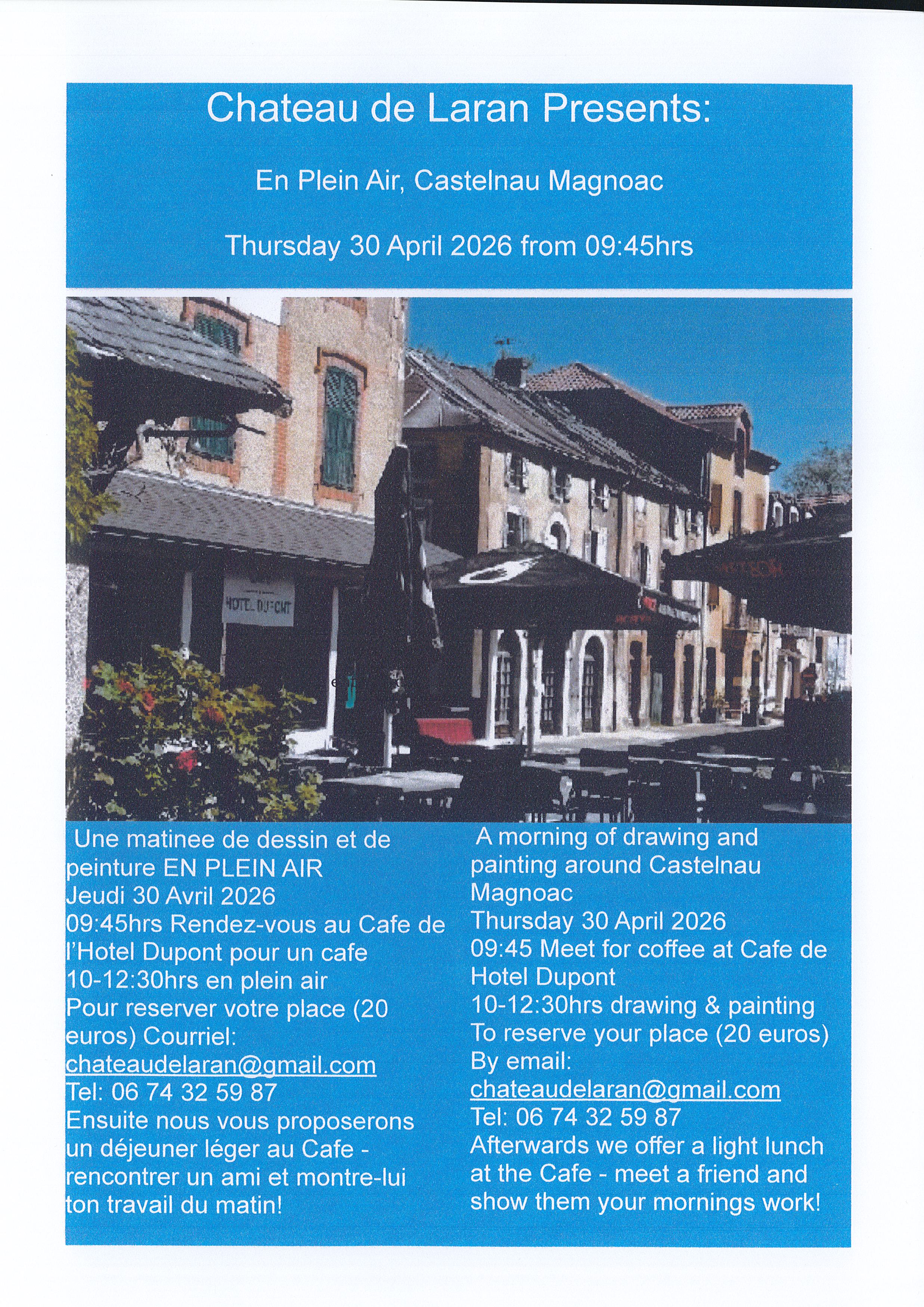 SortiesCours d'histoire de l'art11/03/2026 à TRIE-SUR-BAISE Gaël professeur de design graphique, propose une série de cours d'histoire de l'art ouverts à toutes et à tous, curieux, passionnés ou simples amateurs souhaitant enrichir leur regard Chaque rencontre durera 1 heure à peu près Ces cours permettront de découvrir les grandes périodes artistiques, les mouvements majeurs ainsi que des artistes incontournables ou plus méconnus L'objectif : mieux comprendre les oeuvres, développer son regard critique et partager un moment convivial autour de l'art Les séances sont gratuites, inscription sur place Animation locale Culturelle - Découverte - Sensibilisation Halte aux douleurs articulaires 24/03/2026 à TRIE-SUR-BAISEInscription gratuite Trie-sur-Baïse Département et CCPTM et Mairie Atelier Associative ou civique - Nature et détente - Santé - Forme Ecole buissonière des familles : Peinture végétale 29/04/2026 à PUYDARRIEUXLes plantes sauvages mais aussi nos légumes les plus communs nous permettent de fabriquer de la peinture naturelle Venez découvrir la peinture végétale en famille et repartez avec votre petit tableau A partir de 5 ans Sur inscription MAISON DE LA NATURE ET DE L'ENVIRONNEMENT Animation locale - Atelier - Démonstration - Initiation Pour enfant Découverte - Sensibilisation - Environnement - Nature et détente Tél filaire 05 62 33 61 66 Site internet: http://www.maisondelanature65.com Matinée de dessin et peinture en plein air 30/04/2026 à CASTELNAU-MAGNOACRDV au café Dupont pour un café 10h-12h30 peinture et dessin en plein air Réservation au 06 74 32 59 87 CHATEAU DE LARAN Peinture Culturelle Tél cellulaire 06 74 32 59 87 Randonnée pédestre 01/05/2026 à BONNEFONTInscriptions à partir de 8h Départ 9h Tarif: 7€ - gratuit pour les moins de 12 ans Ravitaillement en cours de circuit Casse croûte à l’arrivée USB Balade / Randonnée Santé - Forme Lire la suite → |