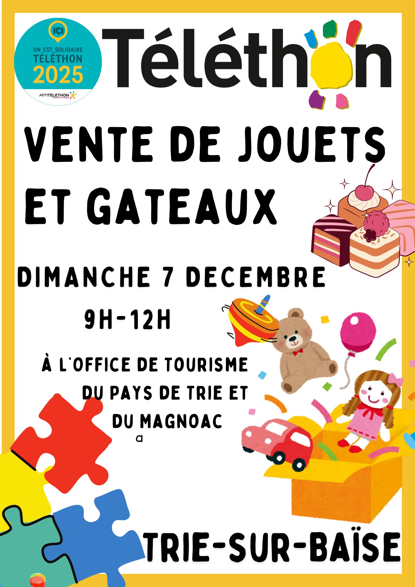 SortiesBraderie Boutique Secours Catholique 03/11/2025 à CASTELNAU-MAGNOACOuvert les 1er et 3ème Jeudis du mois de 14h à 16h et tous les samedis de 9h à 12h Jouets, livres pour les enfants et tenue de fête pour les adultes Présents au marché du 6 décembre Ouvert à tous Recherche de bénévoles 06 73 66 15 67 SECOURS CATHOLIQUE Vide greniers Braderie Associative ou civique Tél cellulaire 06 73 66 15 67 Calendrier des Messes 01/12/2025 à TRIE-SUR-BAISEENSEMBLE PAROISSIAL Religieuse Marché de Noël 06/12/2025 à CASTELNAU-MAGNOACMAIRIE Marché Noël Manifestation commerciale Tél filaire 05 62 39 80 62 Site internet: https://www.castelnau-magnoac.fr Marchez pour le Téléthon 06/12/2025 à TRIE-SUR-BAISEMarche de 21km au profit du Téléthon 8h30 Trie-sur-Baïse 9h20 Tournous-Darré 10h Puydarrieux 11h Sadournin 13h Fontrailles et repas 15€ (carbonnade et ses pommes, dessert, vin et café compris) Inscription aux repas à l'Office de Tourisme TRIE'GYM Balade / Randonnée Associative ou civique - Sports et loisirs Tél cellulaire 06 81 23 79 50 Téléthon 07/12/2025 à TRIE-SUR-BAISEVentes de gâteaux, boissons chaudes et jouets au profit du Téléthon Urne dons devant l’Office de Tourisme OFFICE DE TOURISME Animation locale Associative ou civique Tél filaire 05 62 35 50 88 Site internet: http://tourismecoteaux65.fr Lire la suite → |